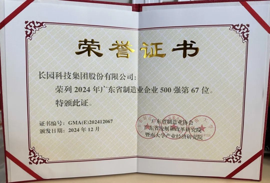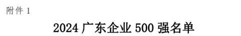 今年会jinnianhui科技集团入选“2024年广东制造业500强榜单”